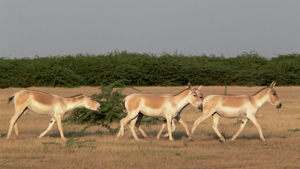 The Gudkhar, or Indian Wild Ass, is a rare species found primarily in the Little Rann of Kutch in Gujarat, India. Known for its striking appearance, with a light reddish-brown coat and a distinctive dark stripe along its back, the Gudkhar is a hardy animal adapted to the harsh desert environment. These wild asses are swift runners and are often seen in herds, roaming the vast salt flats and grasslands. The Indian Wild Ass Sanctuary in Kutch is dedicated to their conservation, offering a unique opportunity for wildlife enthusiasts to observe this endangered species. The Gudkhar plays a vital role in the ecosystem of the region.
